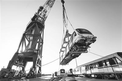 出口新加坡的地鐵車廂12月25日在遼寧營口港裝船外運 記者 白雪騏攝